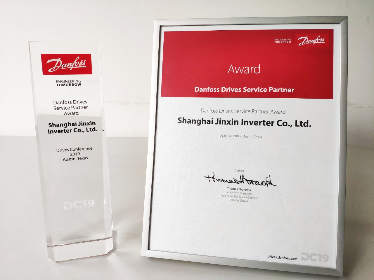 2019年4月24日,“丹佛斯傳動會議2019 (DC19)”在美國Texas州,Austin市隆重舉行,作為丹佛斯戰略合作夥伴,上海9I看片免费视频免费變頻器有限公司憑借優質的服務水平和業績,榮獲2019年度“全球最佳服務夥伴獎”。